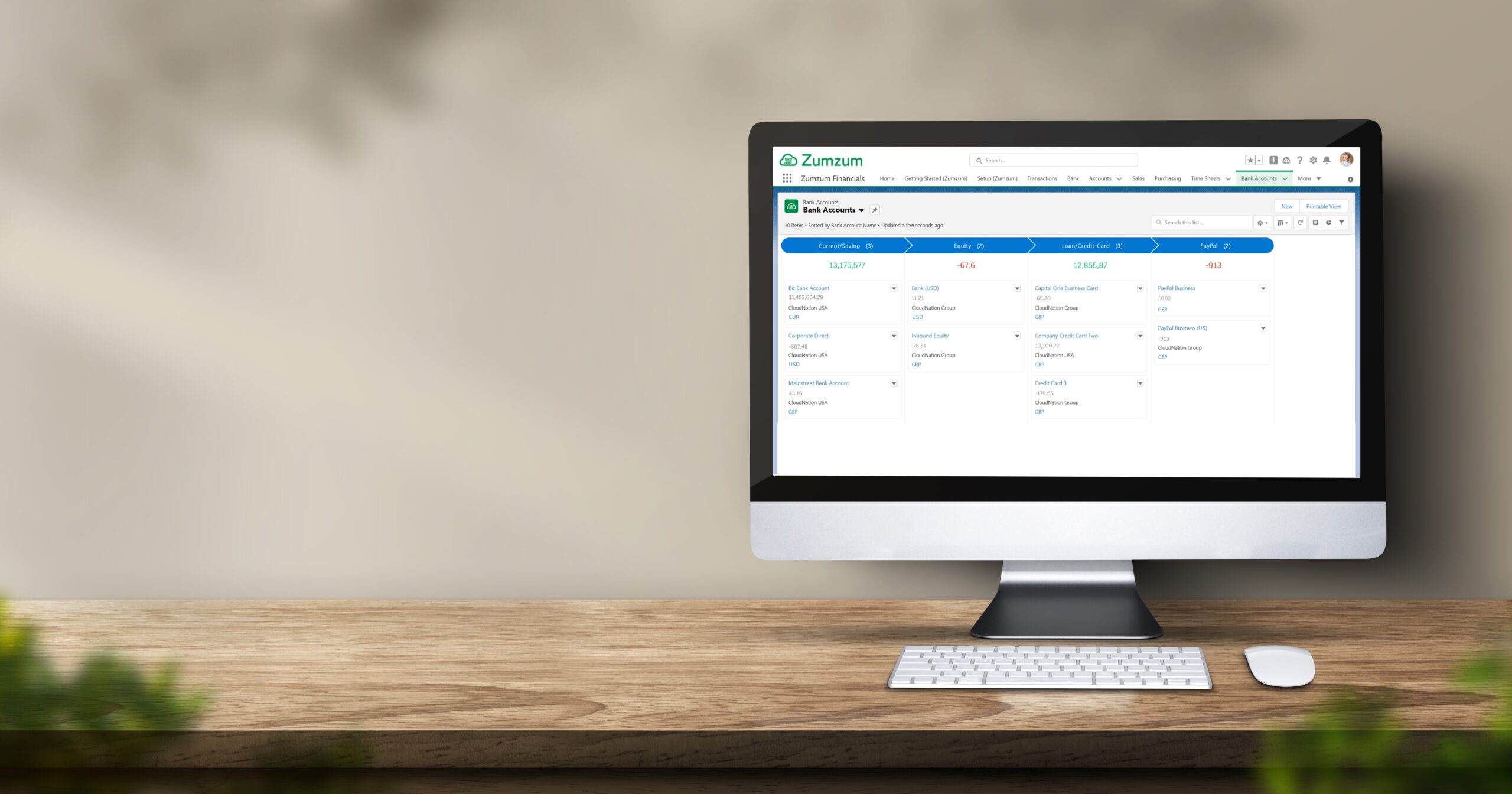 Track bank receipts, payments and transfers for all your bank accounts, companies and currencies. Use list views, reports and dashboards to drill down to individual bank account transactions.